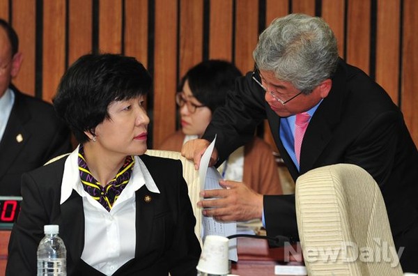 새누리당 <이철우> 여당 간사가 대화를 나누고 있다.