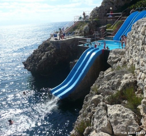 공개된 사진에는 바닷가 절벽에 설치된 미끄럼대의 모습이 담겨 있다. 이곳은 세계적인 휴양지인 이탈리아 시칠리인 것으로 알려졌다. 이 미끄럼대는 절벽 중턱부터 시작해 지중해로 연결돼 있어 수영하는 사람들에게 짜릿함을 선사한다.