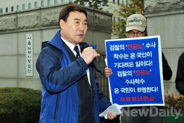 서울남부지검 앞에서 터져나온 목소리다.<자유청년연합>,