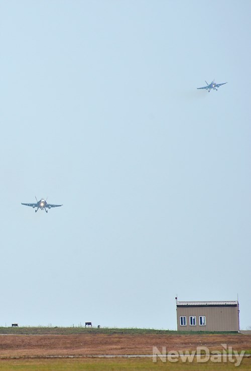 미해병대 총23대(F/A-18, EA-6B, MK-58)가 참여했다.(군산=정상윤)