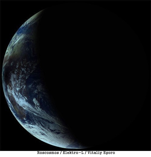 우주에서 본 일식 장면이 포착됐다.지난 3일(현지시각) 러시아 위성이 촬영한 159년 만의 일식 장면을 담은 사진을 공개했다.