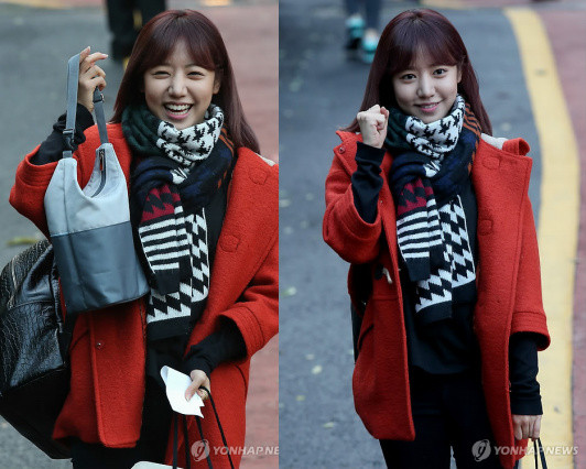 이날 김남주는 빨간색 코트에 검정색 바지, 운동화를 매치한 캐주얼한 차림으로 여느 수험생들과 다름 없었다. 특히, 민낯임에도 또렷한 이목구비와 투명한 피부 등 청순한 미모를 자랑해 눈길을 사로잡았다.