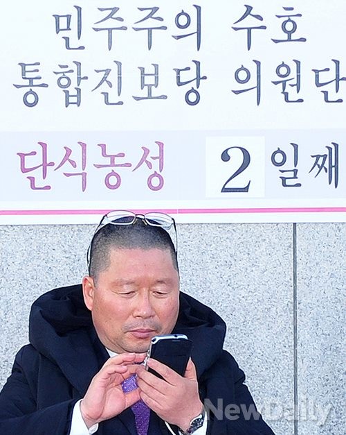 [포토]단식농성장에서 시간 보내고 있는 통합진보당 '오병윤' 의원