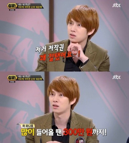 슈퍼주니어 김희철이 저작권료 수입을 공개했다.지난 7일 방송된 종합편성채널 JTBC <썰전-예능심판자>에서 MC 김구라 , 허지웅, 강용석, 박지윤, 김희철은 [2013 가요계 저작권 순위]에 대한 솔직한 의견을 주고받았다.