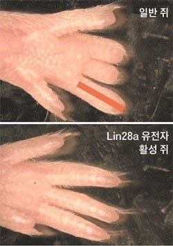 연구진은 “Lin28a를 활성화한 생쥐의 회복능력이 일반 생쥐보다 빠른 것으로 나타났다”며 “생쥐의 털을 깎고 3주간 관찰한 결과 이 같은 사실을 확인했다. Lin28a가 만든 효소가 신진대사를 활발하게 만들기 때문이다”고 설명했다.