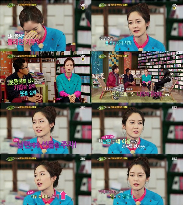 이날 선행, 기부에 관련해 솔직한 대화를 나누던 성유리는 “부모님께 모든 활동 수입을 맡기던 중 몇 년 전부터 용돈을 받게 됐다. 좋아하는 물건을 살까도 고민했으나 처음으로 받게 된 나만의 돈을 함부로 쓰기가 아깝더라”고 자신이 기부금을 모으게 된 계기를 설명했다.