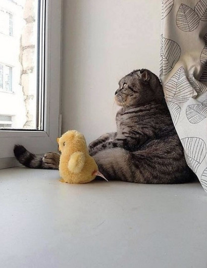 공개된 사진에는 창밖을 바라보고 있는 고양이 한 마리의 모습이 담겨 있다. 특히, 이 고양이는 엉덩이를 바닥에 대고 앉아 마치 마음을 비운 듯 멍한 표정을 짓고 있어 눈길을 끈다