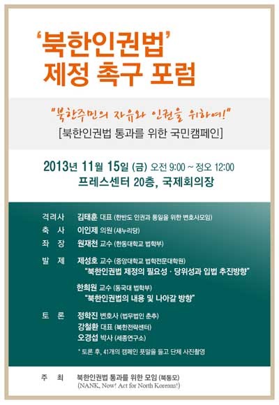 [북한인권법 제정 촉구 포럼]을 연다.포럼에 앞서