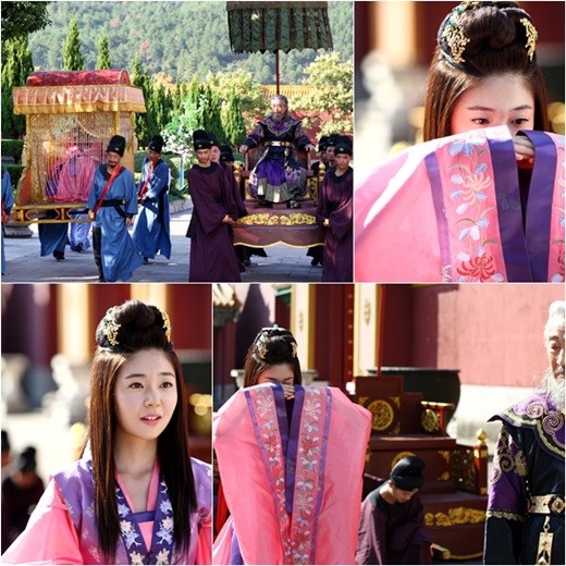 이날 공개된 사진에는 타나실리(백진희)가 아버지 연철(전국환 분)과 함께 궁으로 들어와 처음 타환(지창욱)을 마주하는 장면이 담겨 있다.