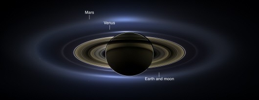 쉽게 보기 어려운 토성의 신비한 사진이 공개돼 눈길을 끌고있다.미국 항공우주국(NASA)은 12일(현지시간) 우주선 카시니가 포착한 놀라운 토성 사진을 홈페이지에 공개했다.해당 사진을 보도한 외신들에 따르면 토성의 고리는 물론 지구, 달, 화성, 금성이 모두 한 사진 안에 들어가 있어 이전에 단순히 토성만을 찍었던 사진과는 다른 의의를 둔다고 설명했다.사진 속 토성의 모습은 65만 1,600KM에 걸쳐 퍼져있는데 육안으로도 보일 것 같은 모습을 하고있다. 이는 카니시로서도 포착하기 힘든 보기 드문 광경인 것으로 알려졌다.