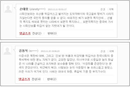 이에 대해 한 누리꾼은 “사회 안보라는 우산을 뒤집어쓰고 벌어지는 도덕적 해이와 국고절취 행위가 사라지지 않는다면 국민적 동의를 얻을 수 없다.”, “선별적 복지도 제대로 못하는 나라에서 보편적 복지라니... 보편적 복지는 종국에 가서는 사회 안보를 뒤집어엎는 지렛대가 될 것이다.”라며 비판했다.