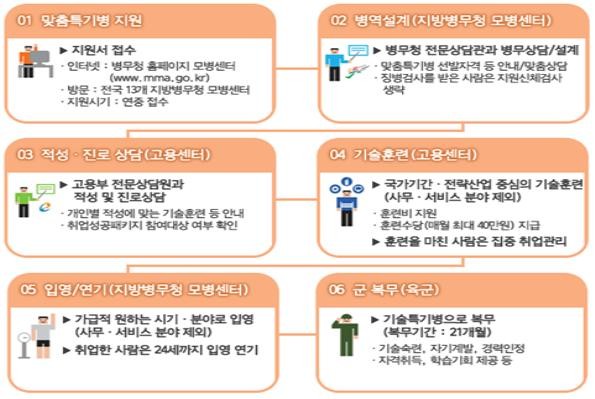전역 후에는 각종 취업지원을 받을 수 있다.병무청은 [맞춤특기병] 제도를