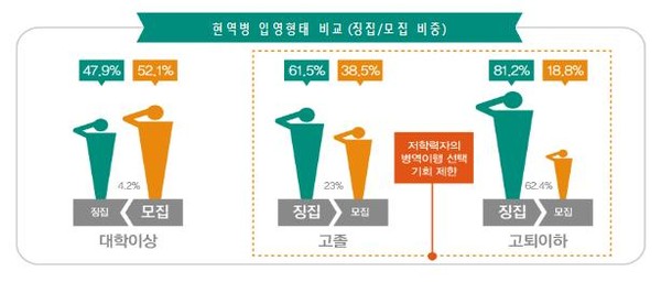 중소영세 업체에 취업하고 있었다.2012년 현역병 입영형태 분석 자료에서도