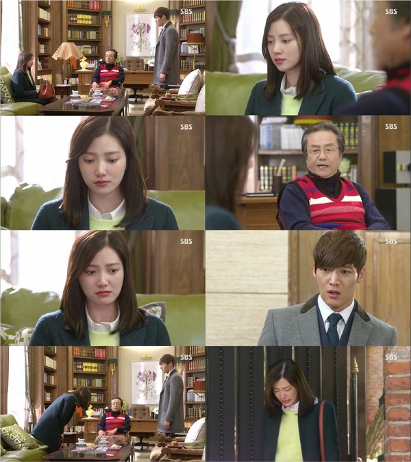 <상속자들> 임주은이 최진혁과의 교제를 반대하는 정동환 앞에서 뜨거운 눈물을 흘렸다.지난 14일 방송된 SBS 수목드라마 <상속자들> 12회에서는 최진혁(김원 역)과 자신의 관계를 문제 삼는 원의 아버지 정동환(김남윤 역)에게 불려간 임주은(전현주 역)이 그로부터 독설을 듣고 고개 숙이는 모습이 그려졌다.