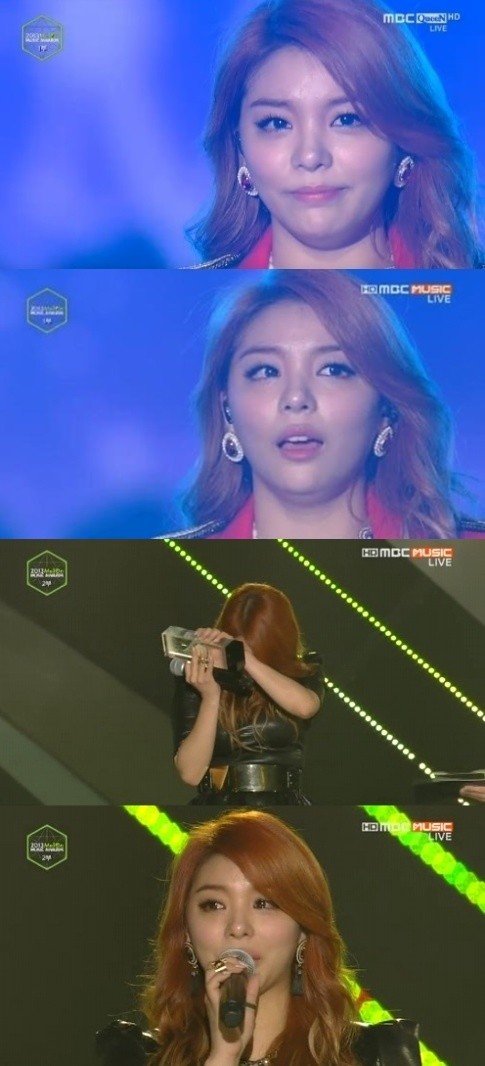 (에일리 눈물, 사진= MBC 뮤직 2013 멜론뮤직어워드 방송 캡처)