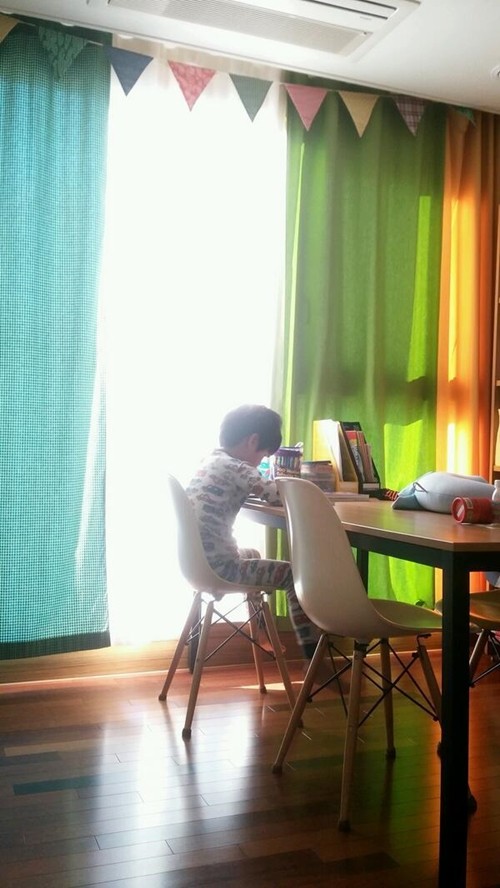 공개된 사진에는 내복 차림으로 책상에 의젓하게 앉아 책을 읽고 있는 준수의 모습이 담겨 있다. 준수는 햇살이 들어오는 테이블에서 책에 집중하고 있으며, MBC <아빠 어디가> 초창기 한글을 제대로 알지 못했던 모습과 확연히 달라진 모습이다.