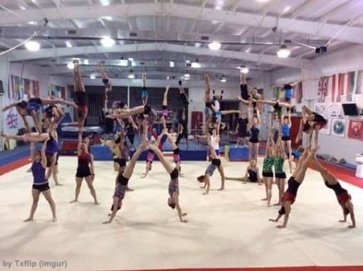 이 사진은 미국 텍사스 휴스턴 인근에 위치한 체조 선수 훈련장에서 찍은 것으로 게시자는 “놀면서 찍었다”고 전했다.