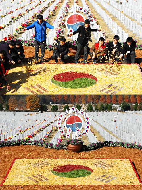 (대형 낙엽 태극기, 사진=현충원)