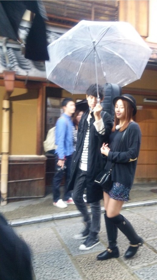 공개된 사진은 현지 팬들에 의해 포착된 것으로 사진 속 두 사람은 우산을 함께 쓴 채 다정하게 이야기를 나누며 거리를 걷고 있다.