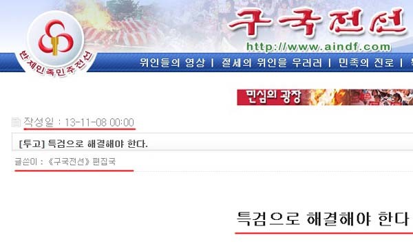 北대남선동 웹사이트 ‘구국전선’ 국정원 특검 선동