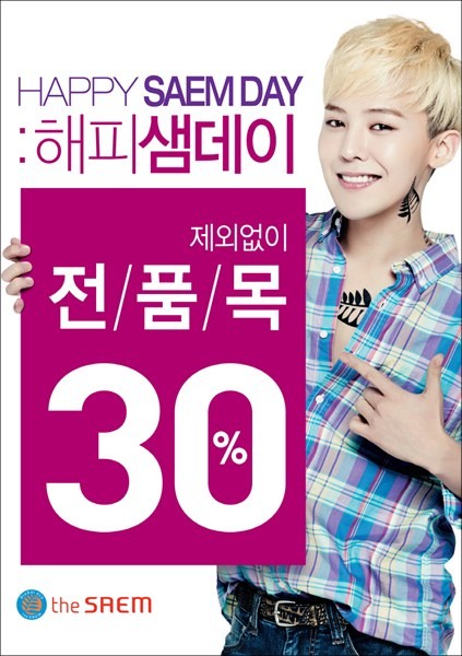 지드래곤이 모델로 있는 화장품 브랜드 <더샘>이