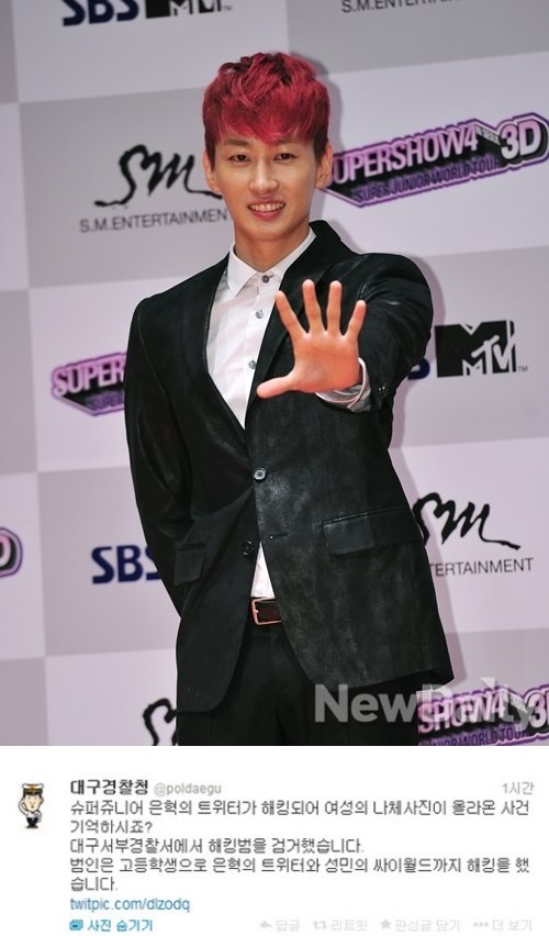 대구 서부경찰서는 은혁의 트위터, 성민의 싸이월드를 해킹해 여성의 나체사진을 유포한 혐의(성폭력범죄의 처벌 등에 관한 법률위반)로 18세 고등학생 A군을 조사 중이다.