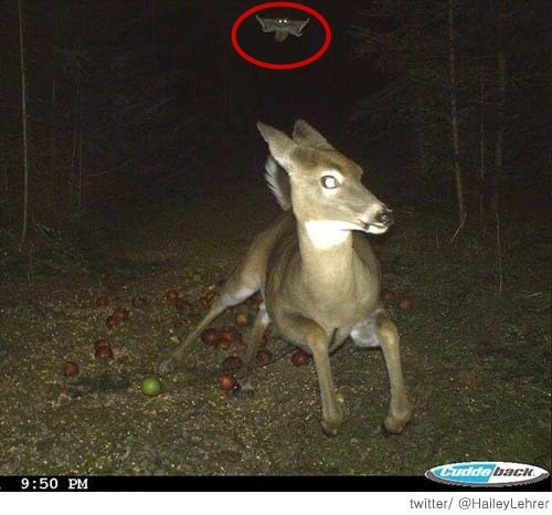 공개된 사진에는 겁에 질려 도망가는 사슴의 모습이 담겨 있다. 이 사슴의 뒤로는 날다람쥐가 온몸을 쫙 펼치고 눈빛을 빛내며 하늘을 날아오르고 있어 눈길을 끈다.