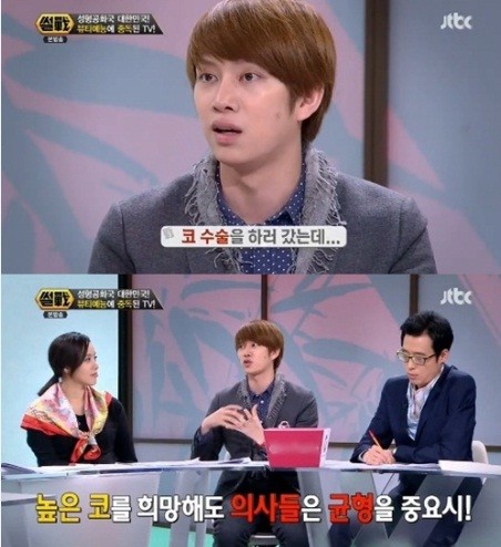 슈퍼주니어 김희철이 코 수술을 한 사실을 고백했다.김희철은 지난 21일 방송된 JTBC <썰전-예능심판자>에서 성형 중독에 대한 이야기를 나누던 도중 “코가 부러져서 수술을 했다. 하고 난 후 코가 예전보다 더 낮아졌다”고 밝혔다.