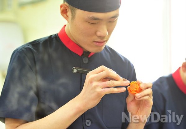 [포토]군대최고 요리왕 선발대회, 조각하듯 섬세한 손