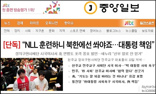 “천안함 사건. 저 NLL(북방한계선)지역에서 한·미 군사합동훈련을 한단 말이에요. 이지스함 3대로 훈련을 하고 있는데, 북한 함정이 어뢰를 쏘고 갔다? 이해가 갑니까? 그렇다면 북한은 아주 굉장한 기술이 있네? 처음에는 이명박 대통령이 ‘나도 배를 만들어 봐서 아는데, 배가 누워지면 끊어진다’ 그랬거든요. 그런데 일주일이 지나니까 이것이 북한이 했다고 만드는 거예요. 왜냐. 북한을 적으로 만들어야 종북 문제로 백성을 칠 수 있으니까”라는 내용의 말을 시국미사의 신부가 했다고, 복수의 참석자들의 말을 인용하여, 중앙일보는 보도했다. 종북세력이 엄연히 존재하고, 북한의 천안함 공격을 온 세상이 인정하는 판국에 정의와 진실과 사랑을 전파한다는 신부가, 마치 월남 패망 직전의 신부들처럼, 북괴를 편드는 발언을 무심하게 하고 있다. 거의 본능적으로 자신과 국가를 죽이는 자멸극을 벌이는 좌익신부들은 망귀 들린 불쌍한 자들일 것이다.