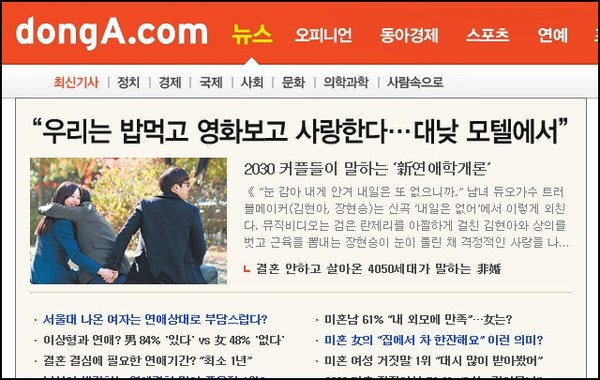 23일 중앙일보(온라인)▲와 동아닷컴▼의 편집 비교 -