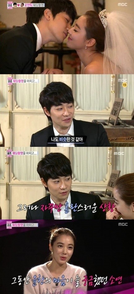 윤한과 이소연은 23일 방송된 MBC <우리 결혼했어요 시즌4>(이하 우결)에서 웨딩화보 촬영 후 서로의 감정에 대해 솔직하게 털어놨다.
