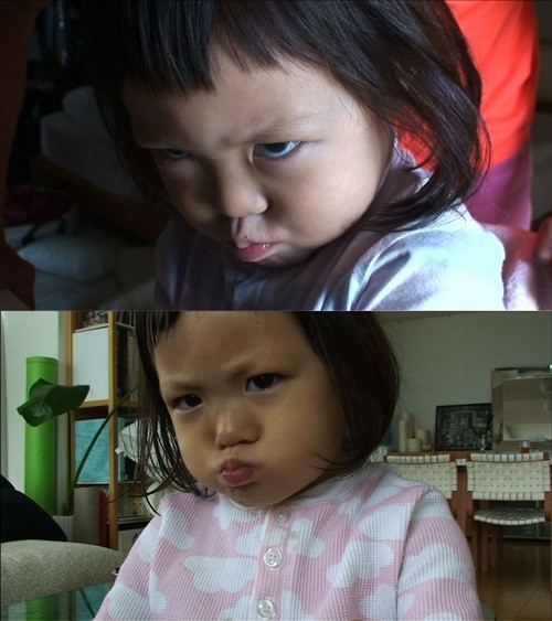 뚱한 표정으로 인상쓰는 모습에 재미들린 추사랑. 아빠 추성훈은 처음엔 하지 말라며 말리다가 나중엔 오히려 “뚱~해봐”라며 부추기는 모습을 보여 웃음을 자아냈다.
