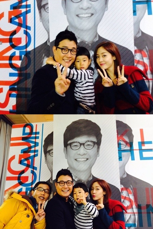 공개된 사진 속 김민율은 김성율의 품에 안겨 MC 김제동, 성유리와 다정한 포즈를 취하고 있다. 특히, 혀를 내밀고 브이 포즈를 취하는 등 장난기 넘치는 표정이 귀여움을 더한다.