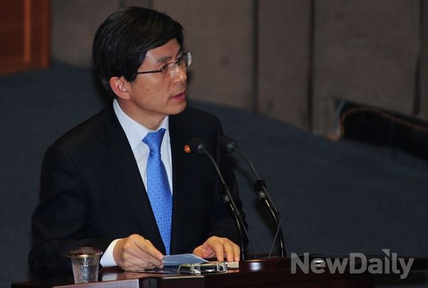 <황교안> 법무부장관이 25일 여의도 국회에서 열린 본회의에참석해 의원들의 질의에 답변하고 있다.