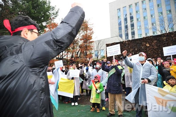 [포토]주먹 높이 들고 외치는 내곡동 입주예정자들