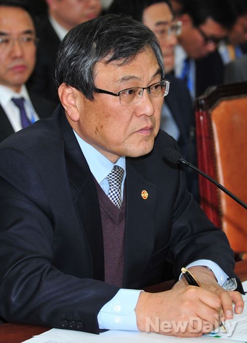 전체회의에서 의원들의 요구사항을 받아 적고 있다.