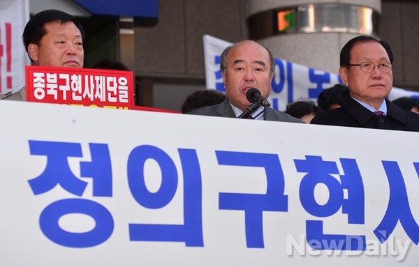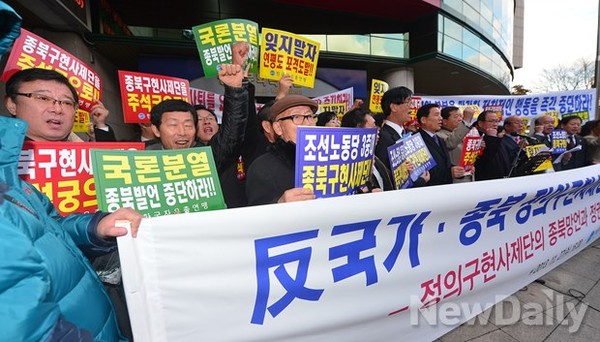 오늘 우리는 국민정서에 맞지 않는 종북논리로 국론을 분열하고 사회갈등을 조장하는 천주교 정의구현사제단 전주교구 신부들의 국론분열 행위에 분노를 금치 못하며 이 자리에 섰다.