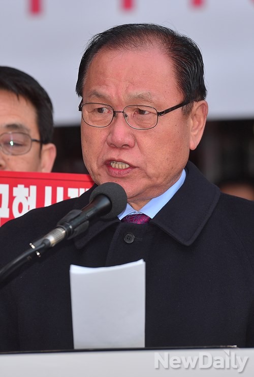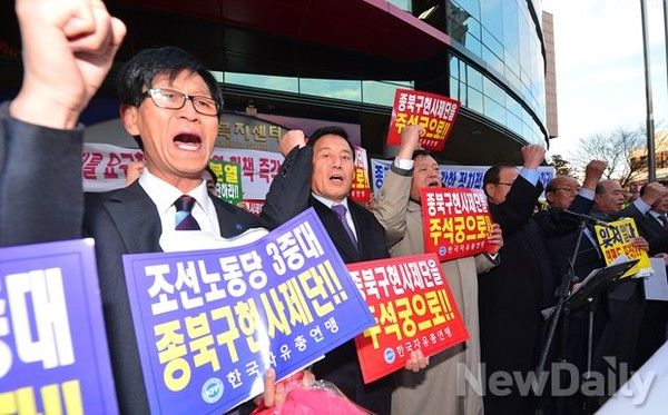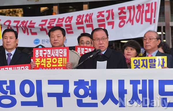 <자유총연맹> 회원들이 구호를 외쳤다. -