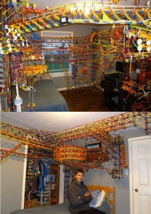 닉은 무려 6개월 간 부품 25000개를 이용해 침실을 롤러코스터로 가득 채웠다. 침실에 만든 롤러코스터는 한 번 구동하는데 7분 가량이 소요된다.