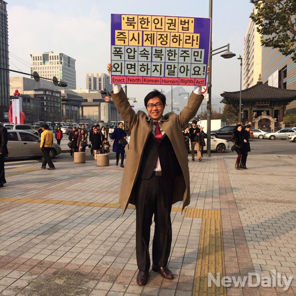사진서명에 동참해 화제다.지난 9월 30일부터 북한인권법 제정을 위한