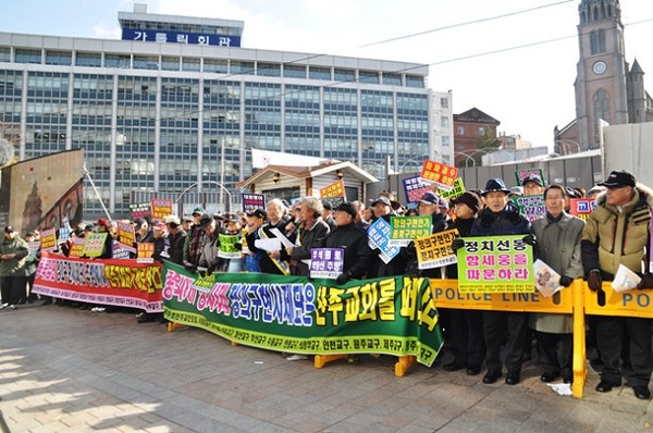 2013년 11월 28일 오전 11시 명동성당 입구 대한민국수호천주교인모임 기자회견