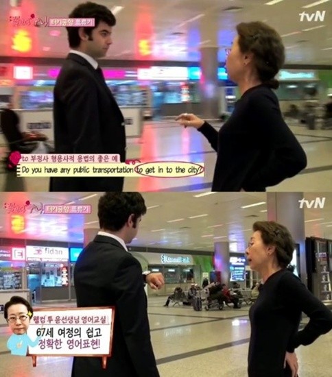 배우 윤여정의 영어실력이 공개됐다.지난 29일 방송된 tvN <꽃보다 누나>에서는 윤여정, 김자옥, 김희애, 이미연, 이승기가 터키로 향하는 모습이 그려졌다.