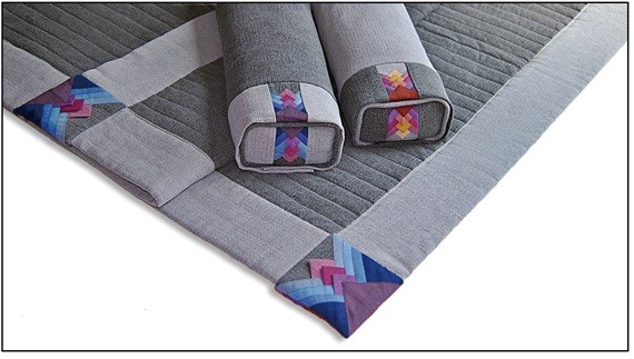 청, 홍실의 패턴으로 베개와 세트화했다.