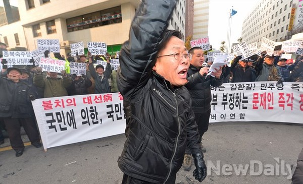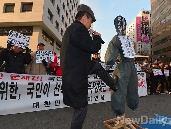 민주당 해산을 촉구했다.이날 애국단체회원들은 성명서를 발표하며