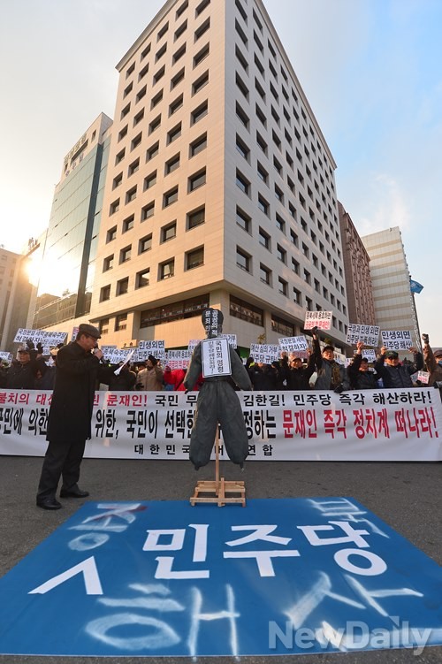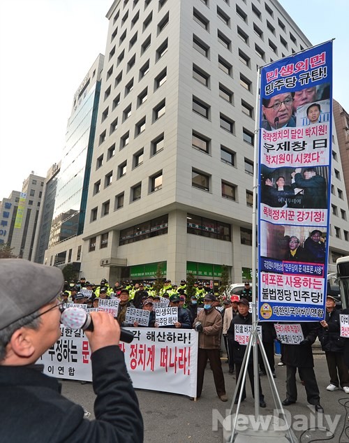 민주당 해산을 촉구했다.이날 애국단체회원들은 성명서를 발표하며