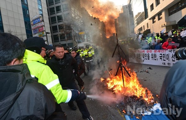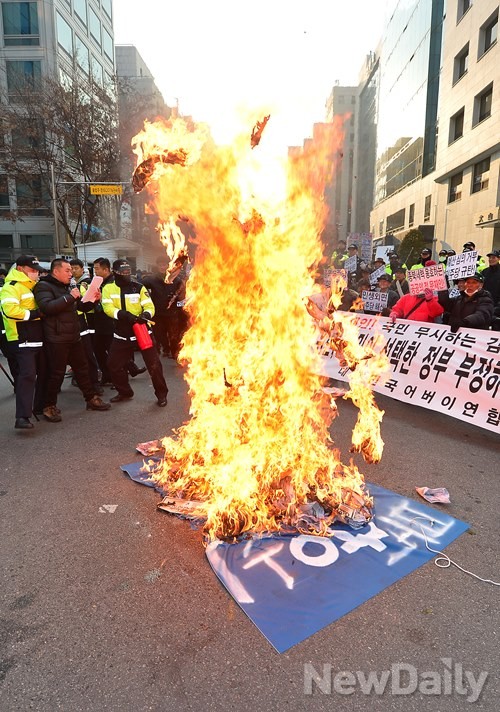 문재인의원 인형에 불을 붙여 화형식을 진행했다. -
