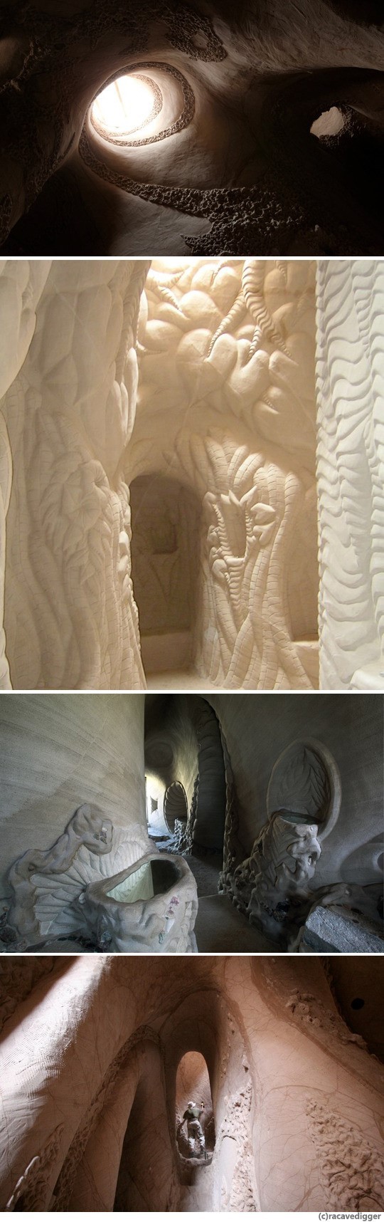 공개된 사진은 오직 곡괭이와 삽 등 간단한 도구를 이용해 판 동굴의 모습이 담겨 있다. 이 동굴을 판 주인공은 미국의 아마추어 조각가 라 폴레트로 그는 25년간 동물에 조각을 새겼다.