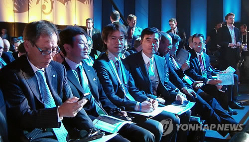 7일(한국시간) 조 추첨식에 참석한 정몽규 대한축구협회 회장과 홍명보 대표팀 감독의 모습이다.