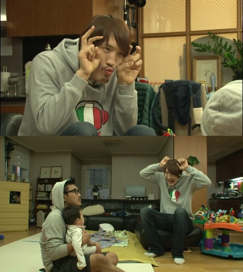 거구의 최홍만이 들어오자 쌍둥이들의 시선은 집중됐고, 최홍만은 아기들에게 갖은 재롱을 부렸다. 특히, 최홍만은 까꿍놀이부터 귀여운 표정으로 반전 애교를 선보였다.